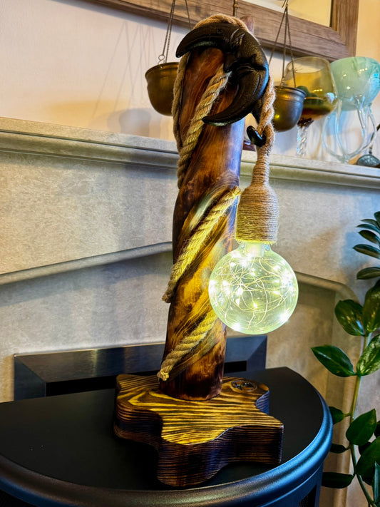 Lampe rustique en bois avec tête de cheval et fer à cheval